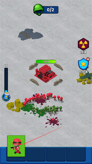 单人模式设计多层闯关关卡,每关有独特敌人阵容与地形;联机模式支持多人组队,队友间可共享火力支援,配合不同火箭炮类型形成互补,共同对抗强力BOSS与密集敌人。
