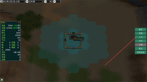 1、在主界面点击右侧人才选项,进入人才相关功能界面。
