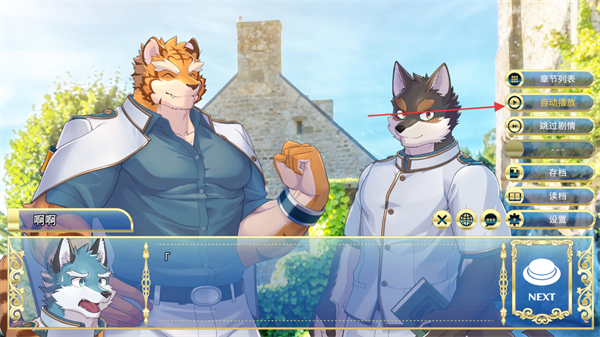 3、触发角色啊南的互动,对话栏显示空内容,点击NEXT推进剧情。