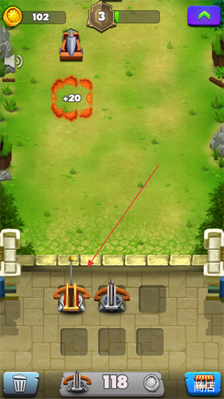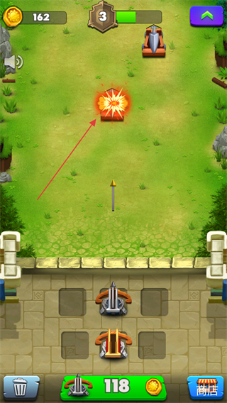 2、利用武器攻击敌方单位,触发爆炸效果消灭敌人,获取金币。