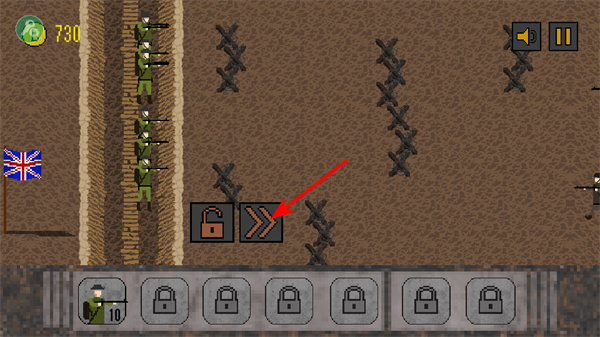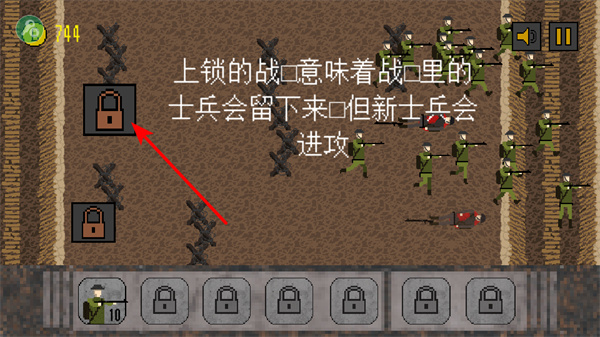 4、利用战壕锁定,了解上锁战壕的机制,上锁后战壕内的士兵会留守,新士兵继续进攻,合理运用该机制。