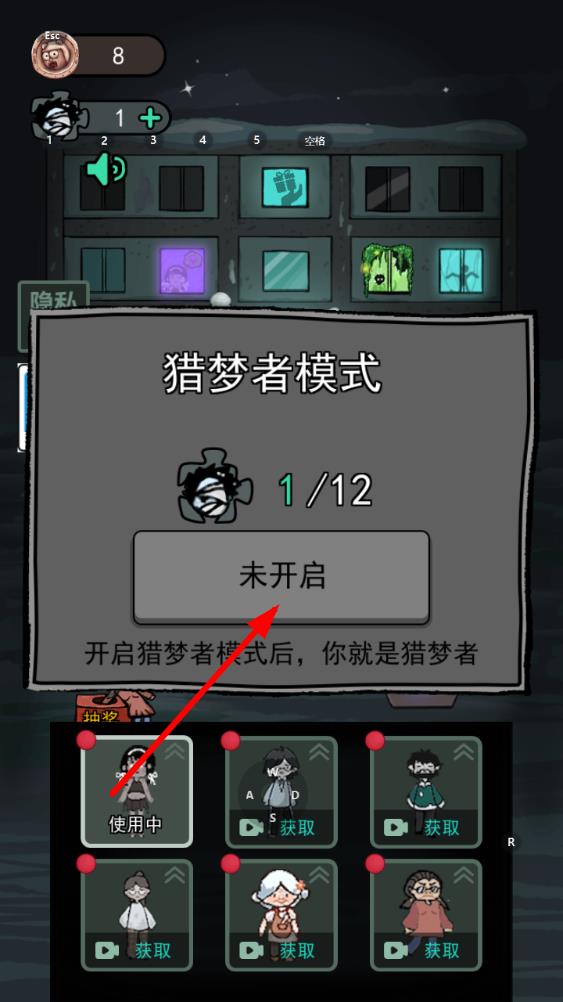 3、当拥有足够的猎梦者碎片达到,点击猎梦者头像图标兑换猎梦者碎片,完成兑换后即可开启猎梦者模式,在下次游戏中就能选择成为猎梦者。
