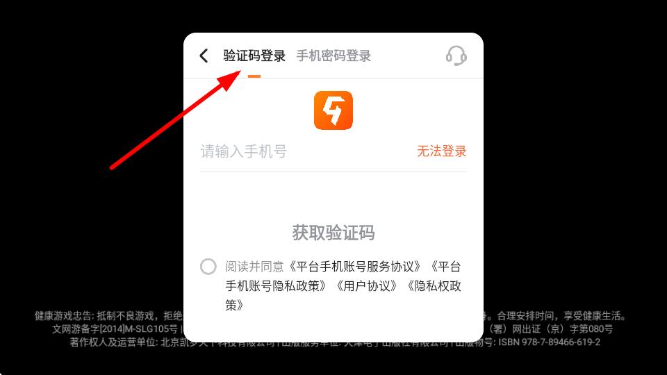 2、进入登录界面后,点击验证码登录,输入手机号后获得验证码即可登入。
