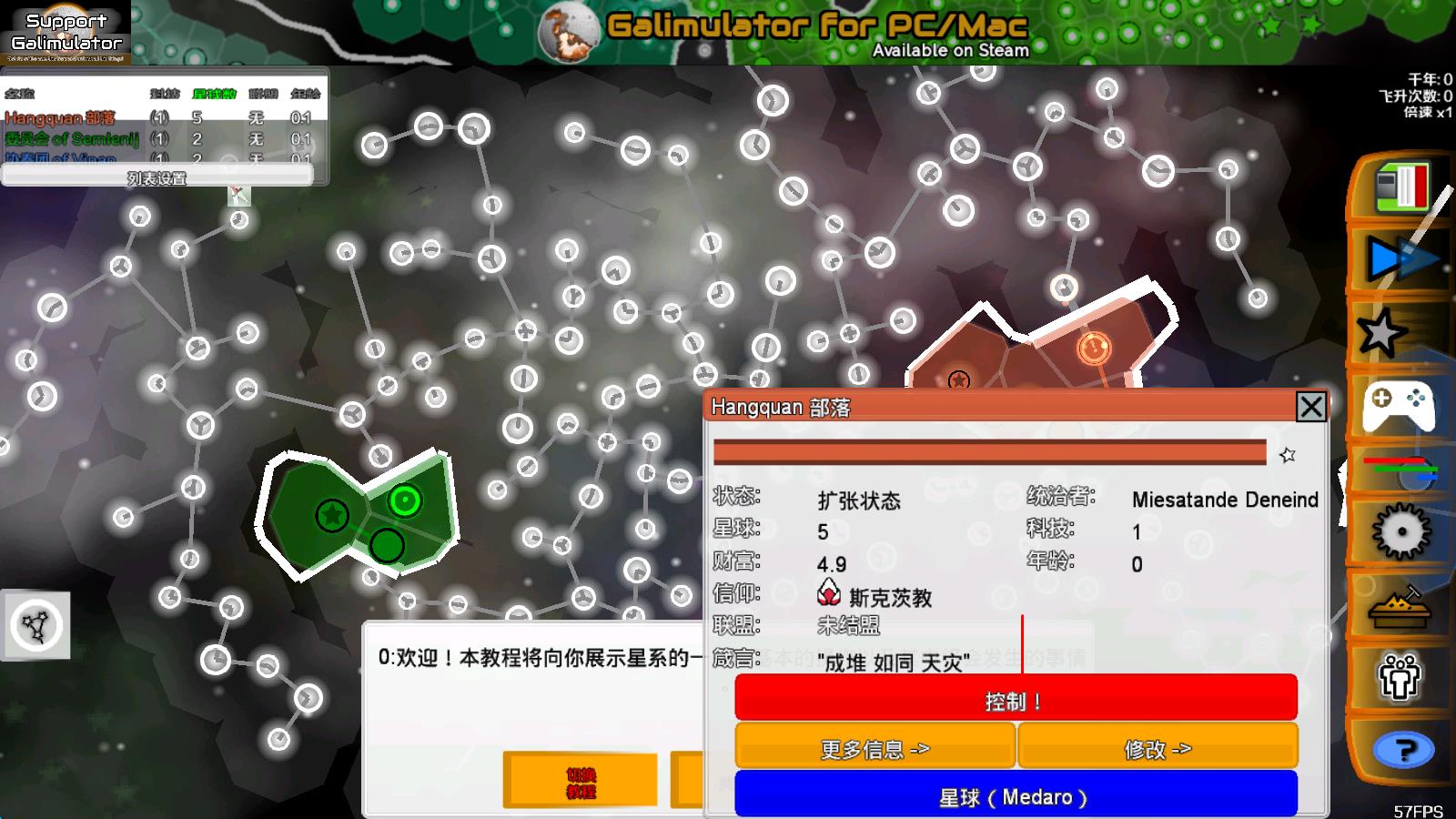 3、通关阶段,面对星系级激烈战争与太空怪物威胁,利用物理规律平衡宇宙系统,指挥军队展开策略大战,逐步扩张势力,向银河帝国目标迈进。