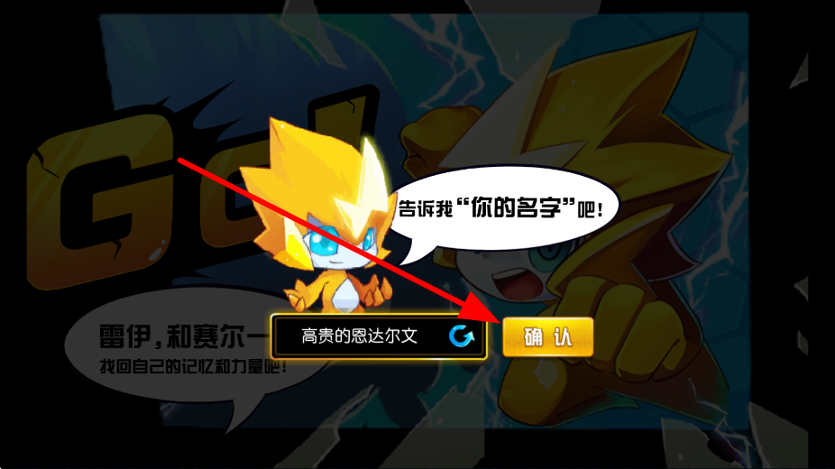 1、首先进入游戏,会有角色名字设定环节,输入心仪的名字后点击确认,完成角色名字的设定,开启在赛尔号的冒险。