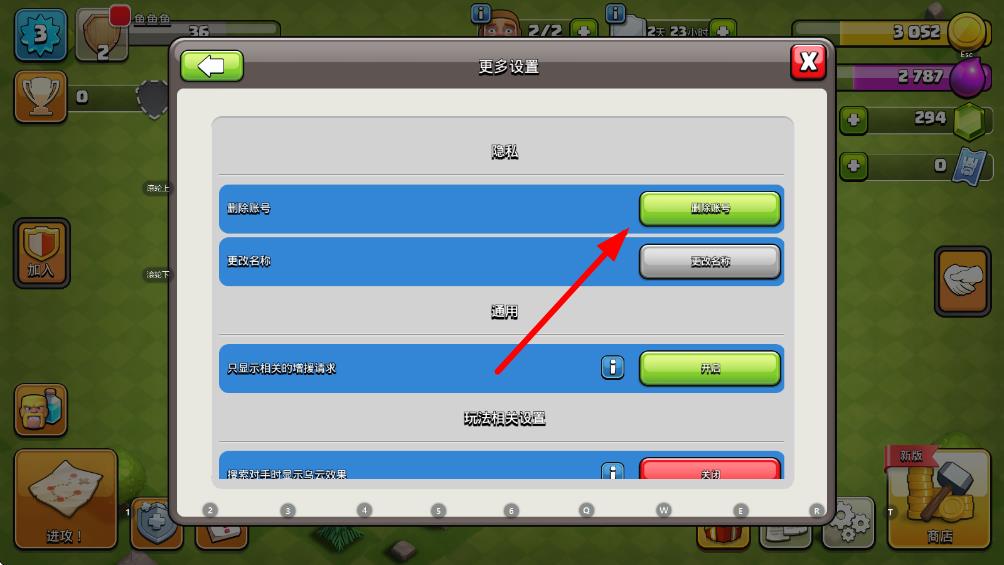 3、在更多设置界面的隐私板块下,点击删除账号按钮,按照后续提示完成操作,即可注销部落冲突账号。请谨慎操作,注销账号后数据无法恢复。