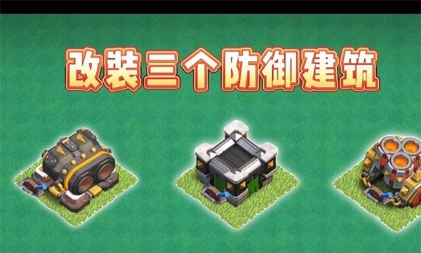 3、改装主世界的三个防御建筑(箭塔加农炮,机炮);