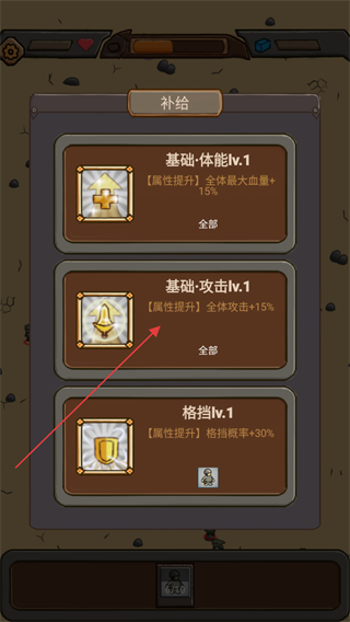 1、在补给界面选择基础·攻击lv.1,为全队增加15%攻击属性,提升作战输出能力。