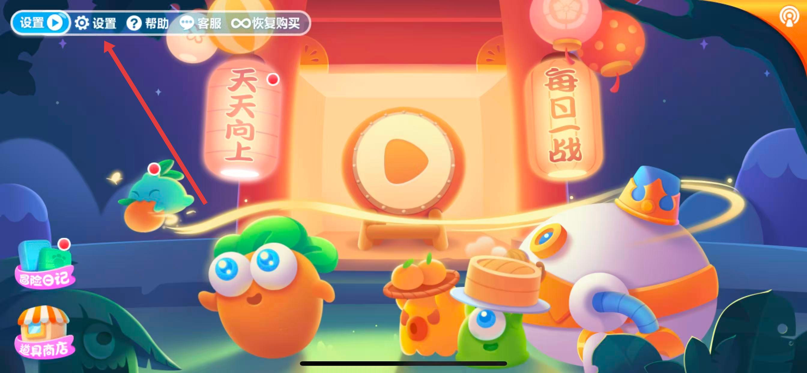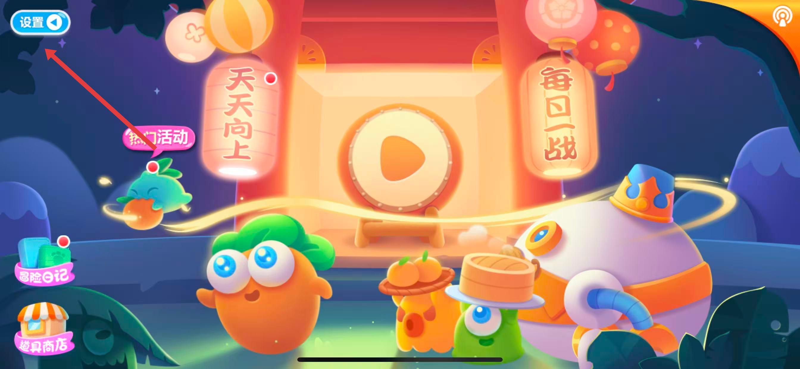 1、打开保卫萝卜2游戏,点击主界面左上角的设置按钮。