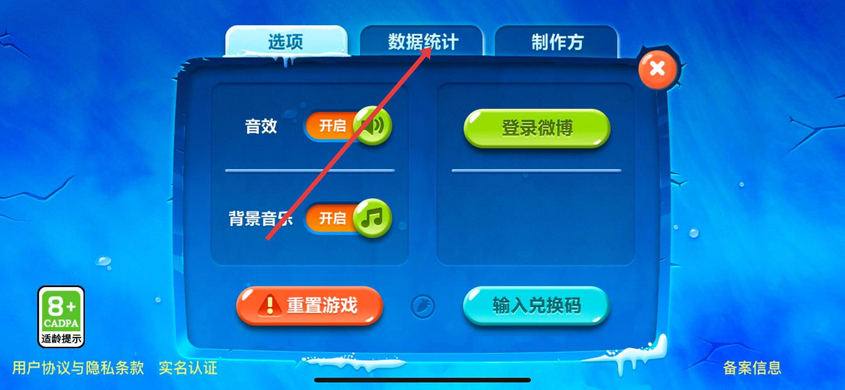 3、进入设置界面后,点击上方的数据统计选项卡。