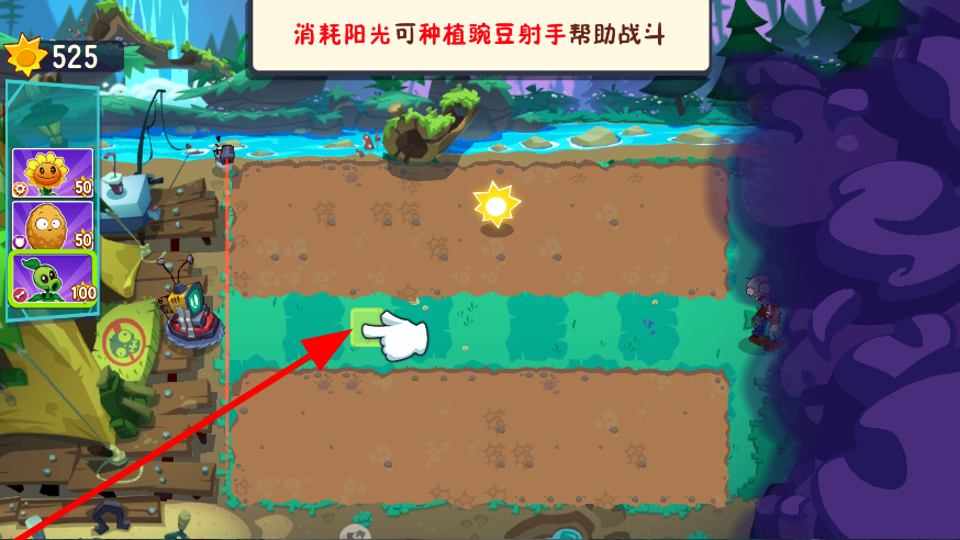 2、当拥有足够阳光后,消耗阳光种植豌豆射手等植物,将植物种在合适的位置,让其能够有效攻击前来的僵尸,助力战斗。