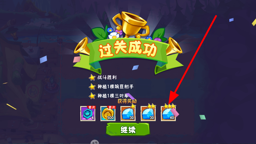 4、成功抵御僵尸的进攻后,可获得过关奖励,如钻石等道具,这些奖励能用于解锁新植物或提升现有植物的能力,增强防御实力。