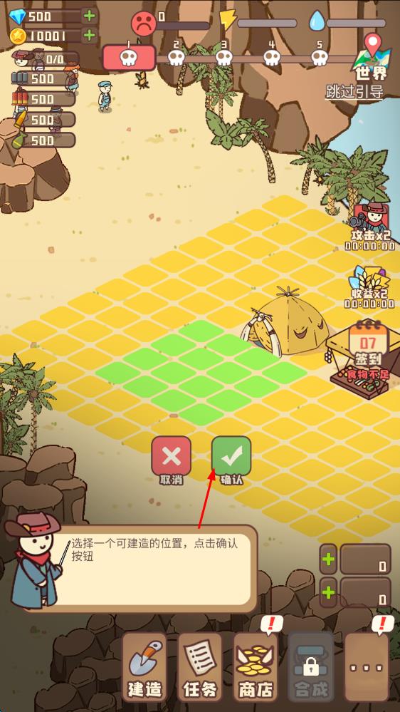 1、进入幸存者村庄,首先寻找幸存居民组建初始团队,收集基础材料建造简易住所与资源生产建筑,开启村庄的初步建设与资源储备。