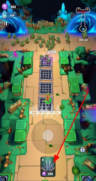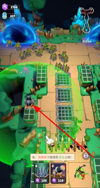 3、放置防御塔,在高台放置防御塔,构建防线,攻击来犯敌人,保障基地安全,推进塔防进程。
