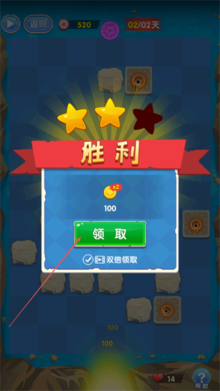 4、通关后点击领取按钮获取金币奖励,当前获得22金币,界面显示胜利。