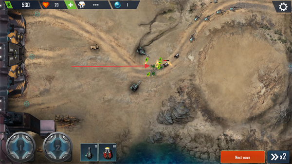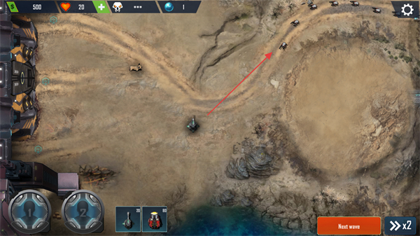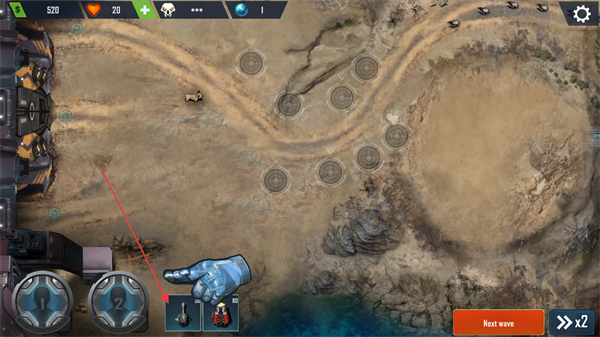 1、点击下方防御塔选项,将其部署到路径旁的空位,利用地形拦截敌方单位,准备迎击进攻。