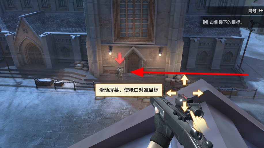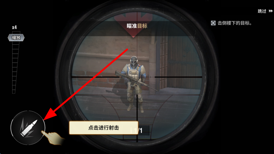 1、滑动屏幕能调整枪口方向,让枪口精准对准目标,随后点击瞄准相关操作,进入瞄准状态,此时可清晰看到目标,再点击射击按钮,就能向目标发起攻击。