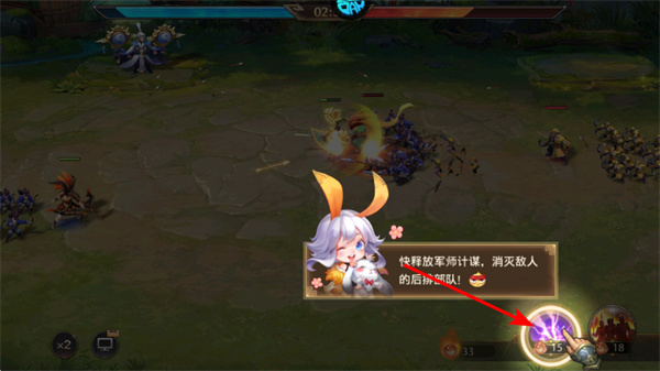 3、战斗中释放军师计谋时,点击右下角计谋按钮,这是扭转战局的核心操作,需在合适时机使用,消灭敌人部队以掌控战场。