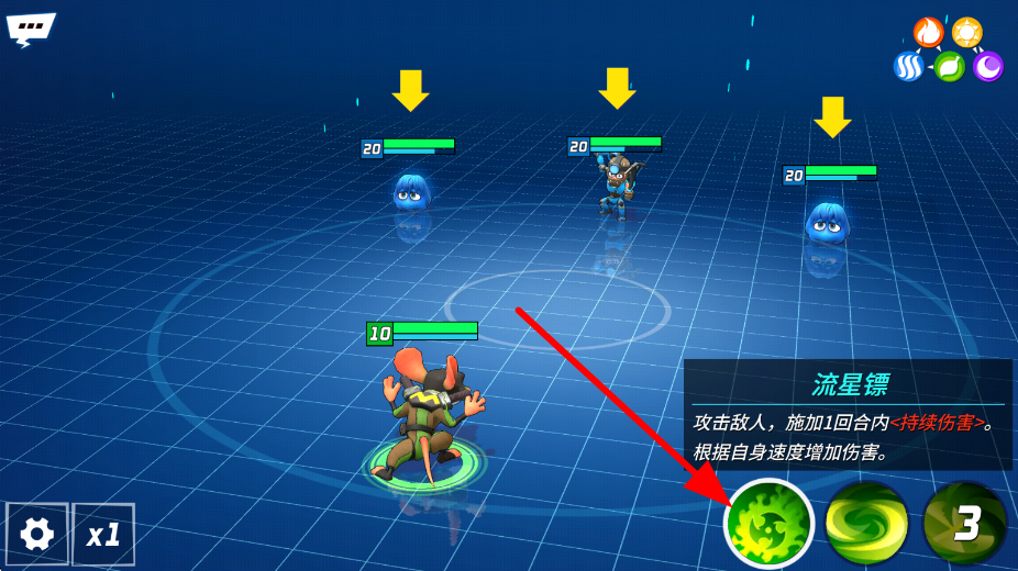 4、战斗时还可使用各类技能,如流星镖等,技能能攻击敌人并施加持续伤害,且根据自身速度增加伤害,借助技能提升战斗效率,更好地完成冒险。