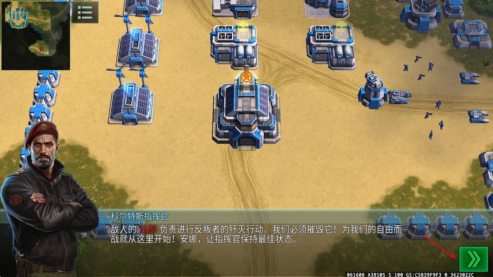 1、打开游戏后,先从联盟军与反抗军中选择心仪阵营加入,随后进入教学关卡,点击右侧按钮选中所有己方单位,初步熟悉基础操作逻辑。