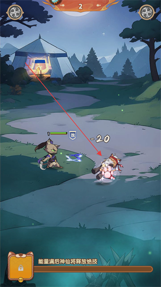 3、持续攻击,击败敌人,推进关卡至第2关,继续战斗。