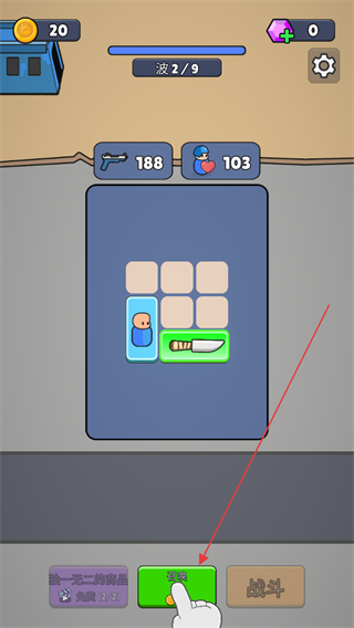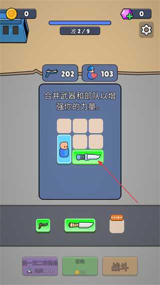 3、完成合并后点击战斗,进入波2/9的战斗关卡。
