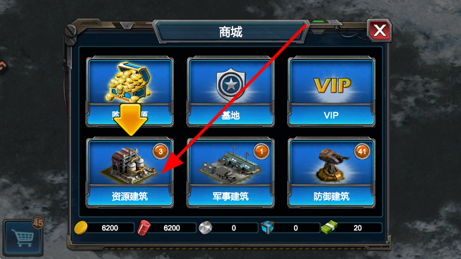 1、选择资源建筑进行建造,资源建筑能持续产出金属、石油等资源,这些资源是基地建设、部队训练等各项操作的基础,要合理规划资源建筑的数量与布局。