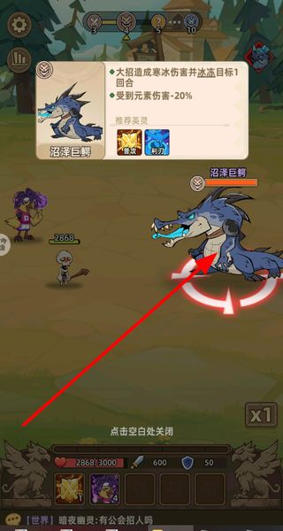 4、查看首领信息,了解首领的技能和属性,为挑战首领做好准备,顺利通过冒险关卡。