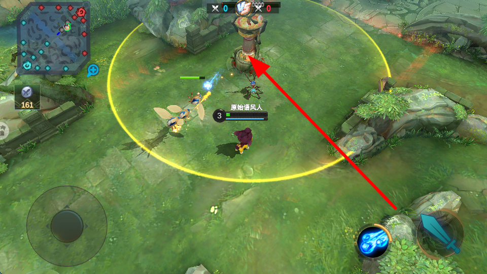 1、移动依靠左下角摇杆,能控制英雄在地图中前进、后退、向左或向右移动,以此调整战斗位置。