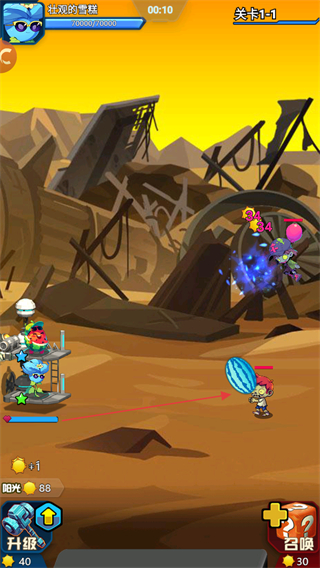 3、消耗阳光召唤新的英雄单位,补充战场战力,配合已有英雄集火攻击敌方,提升输出效率。