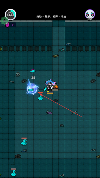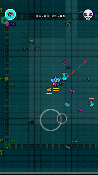 3、通过移动积累能量,松开操作触发攻击,清理敌方目标。