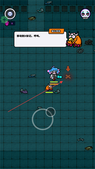 1、操控角色移动到橙色标记位置,完成初始引导步骤。