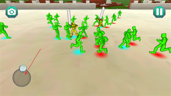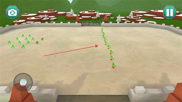 2、军队组建后进入战场,操控绿色木偶人队伍向敌方进发。
