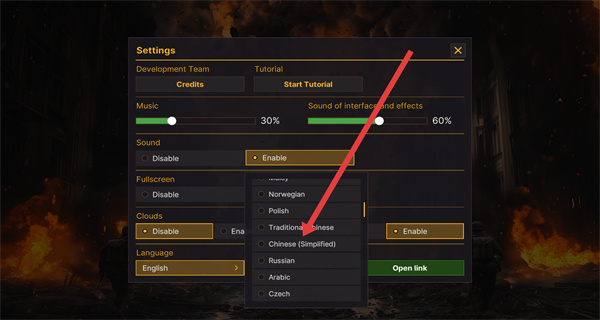 3、在语言列表里选择Chinese (Simplified),把游戏语言切换为简体中文。