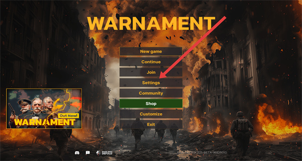 1、在Warnament主界面,点击Settings选项,进入设置页面,准备调整游戏配置。