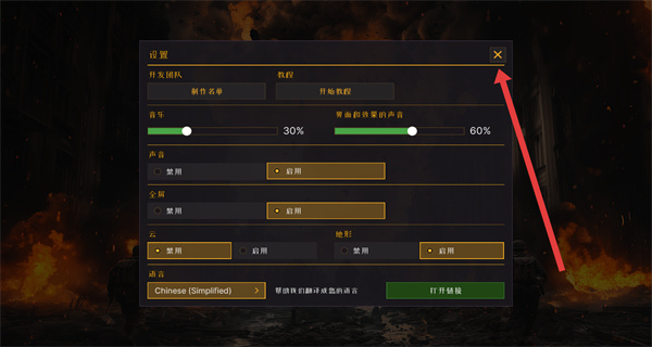 4、语言切换好后,点击设置页面右上角的×关闭按钮,回到游戏主界面,就能用简体中文体验游戏了。