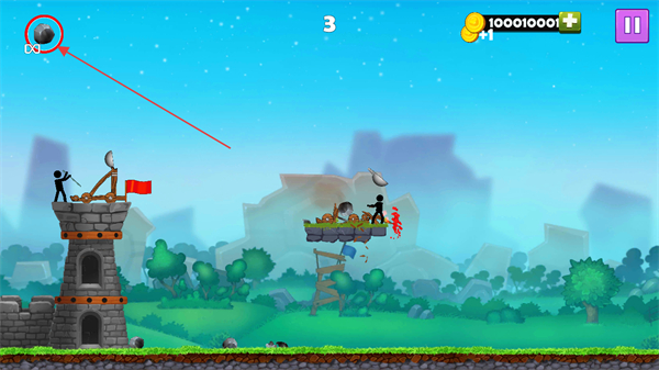 3、持续发射石弹,消灭更多敌方火柴人,提升分数,推进游戏进程。