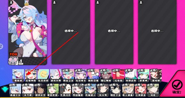1、选择自己想要使用的角色,在下方角色列表里找到对应的选项,选好后点击确定按钮,即可进入游戏准备环节。