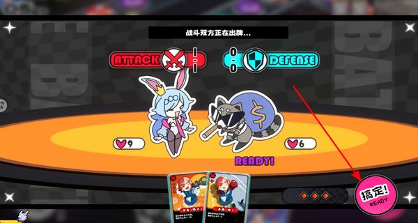 4、进入战斗界面后,选择要使用的战斗卡牌,选好后点击搞定按钮,即可完成出牌,进入战斗结算阶段。