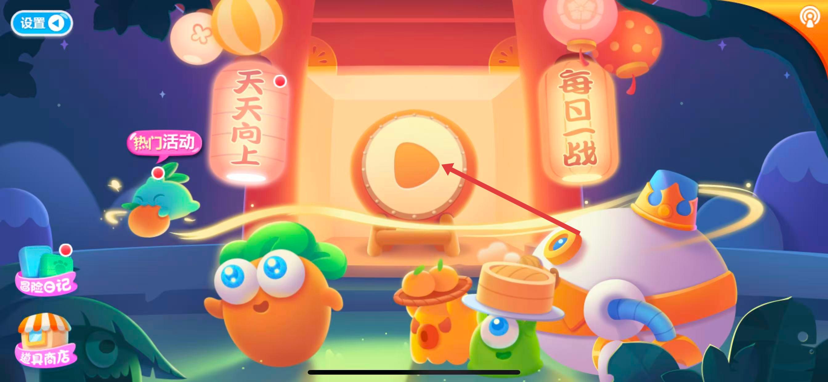 1、打开保卫萝卜2游戏,点击主界面中间类似播放按钮的图标,进入关卡选择界面。