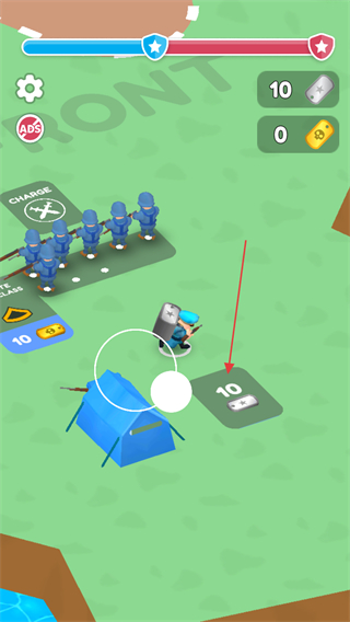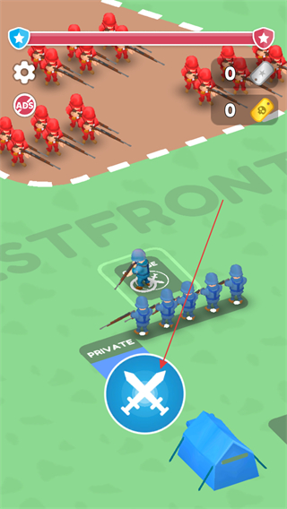 1、点击交叉剑图标,指挥蓝色士兵部队向红色敌人发起进攻。