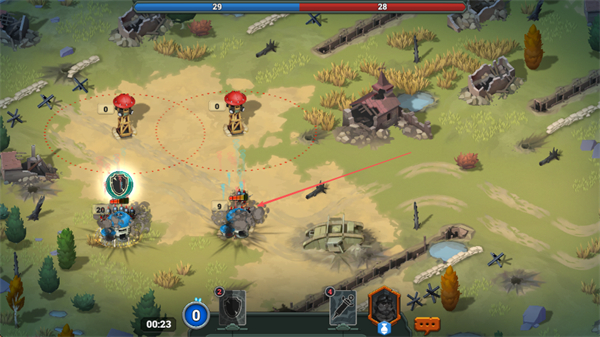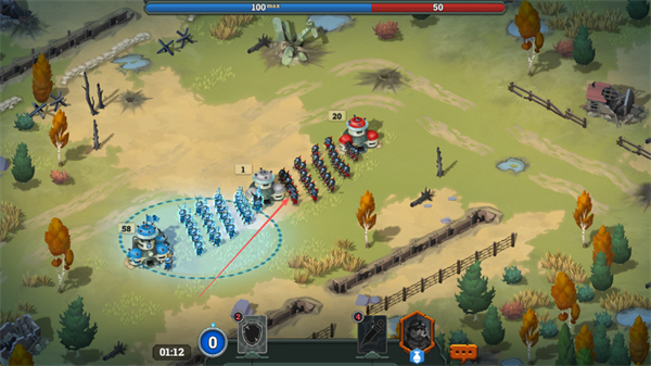 地堡战争一战是一款以第一次世界大战为背景的多人作品,玩家将以战场指挥官的身份投身硝烟弥漫的战场,核心围绕地堡建设与兵力调配展开,通过升级地堡持续生成士兵,规划路线攻占中立及敌对地堡,借助加速移动、强化防御等战术卡牌提升作战效率,派遣具备轰炸支援等技能的指挥官扭转战局,凭步步为营的策略配合,最终以占领全部地堡赢得胜利。