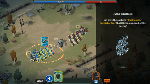 3、使用快速行军特殊指令,让士兵加速前进,保持对敌方的领先优势。