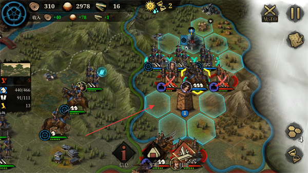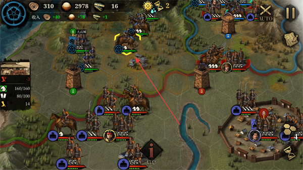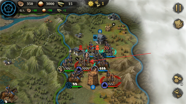 2、操控己方部队移动,与敌方部队交战,通过战斗削减敌方兵力,推进战场控制范围。