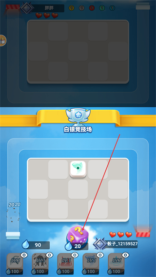 1、进入白银竞技场,消耗20水滴掷骰子,在棋盘上生成骰子单位,开启对局。