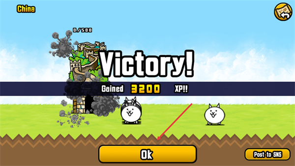 4、战斗胜利显示Victory后,点击Ok完成结算,获得的XP会累积提升账号等级。