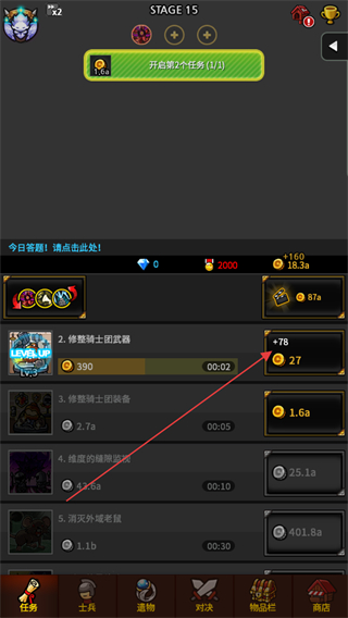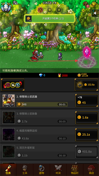 3、升级任务,如修缮骑士团武器,提升任务奖励,获取更多金币和资源。