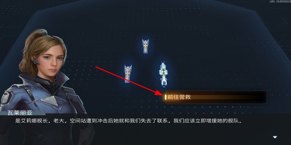 2、剧情对话界面,点击对应的选项推进游戏的故事流程,了解任务背景并开启后续的救援等行动。