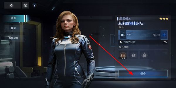 3、选择舰队的角色人物选择对应的舰长,点击任命按钮确定其职位,借助舰长的技能提升舰队的作战能力。