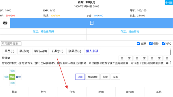 摒弃繁杂画面,以清晰文字与简洁按钮呈现核心信息,操作直观易懂,虽体量小巧,但融合生存建造、战斗冒险等多元内容,不影响玩法深度。